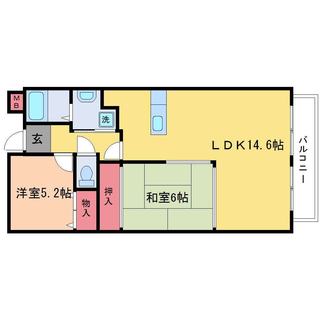 | 間取り詳細 | 洋室 5.2畳 、和室 6畳 、LDK 14.6畳 |