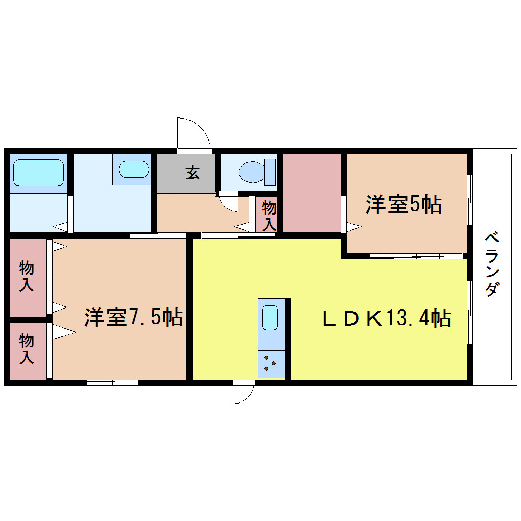 | 間取り詳細 | 洋室 5畳 、LDK 13.4畳 、洋室 7.5畳 |