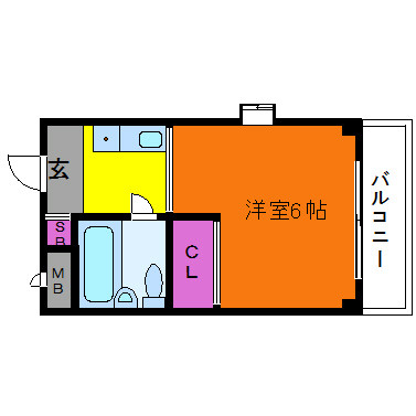 間取り詳細 K 2畳 、洋室 6畳
