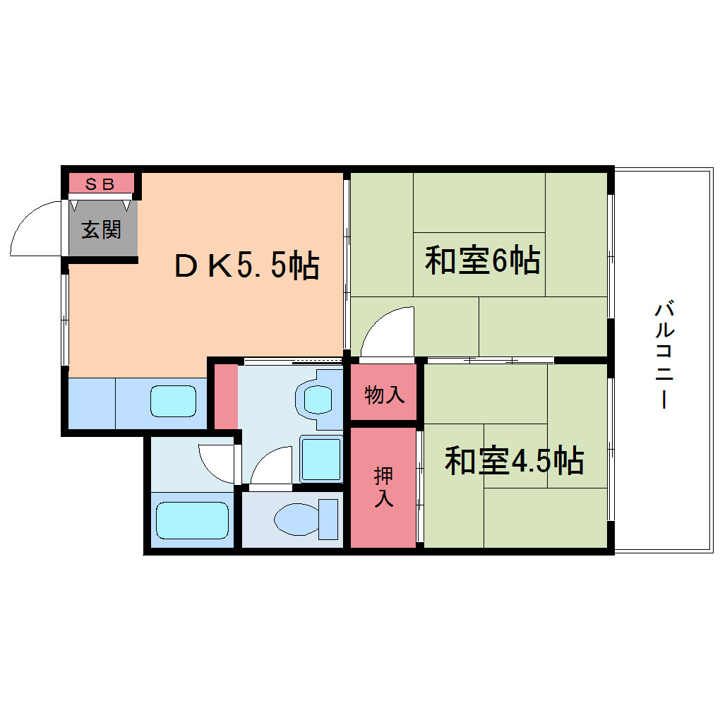 | 間取り詳細 | DK 5.5畳 、和室 6畳 、和室 4.5畳 |