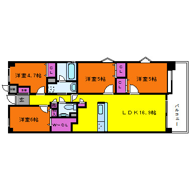 | 間取り詳細 | LDK 16.9畳 、洋室 6畳 、洋室 5畳 、洋室 5畳 、洋室 4.7畳 |