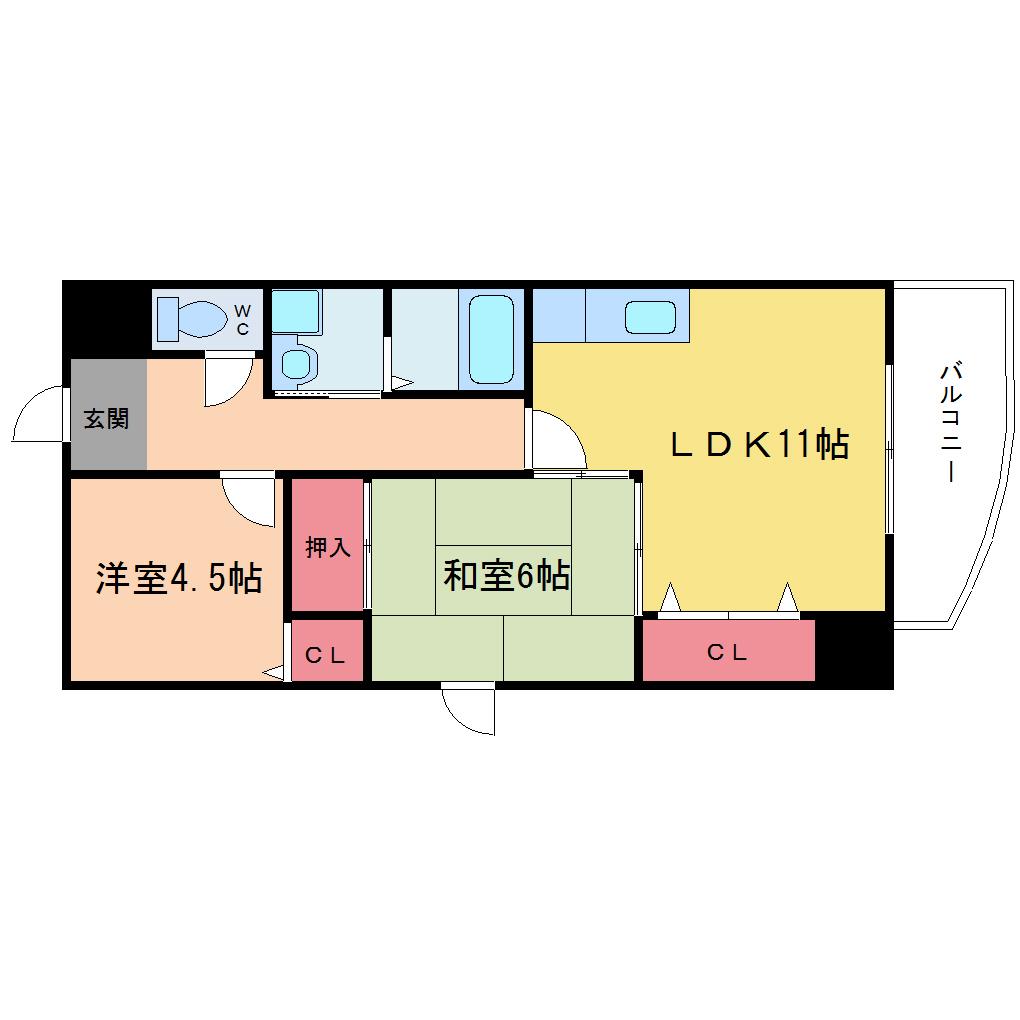 | 間取り詳細 | LDK 11畳 、洋室 4.5畳 、和室 6畳 |
