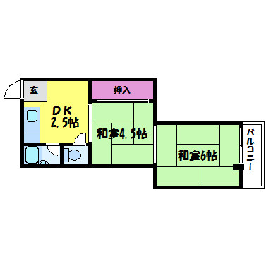 | 間取り詳細 | DK 2.5畳 、和室 6畳 、和室 4.5畳 |
