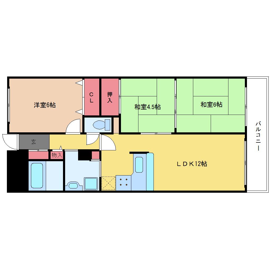 | 間取り詳細 | 洋室 6畳 、和室 6畳 、和室 4.5畳 、LDK 12畳 |