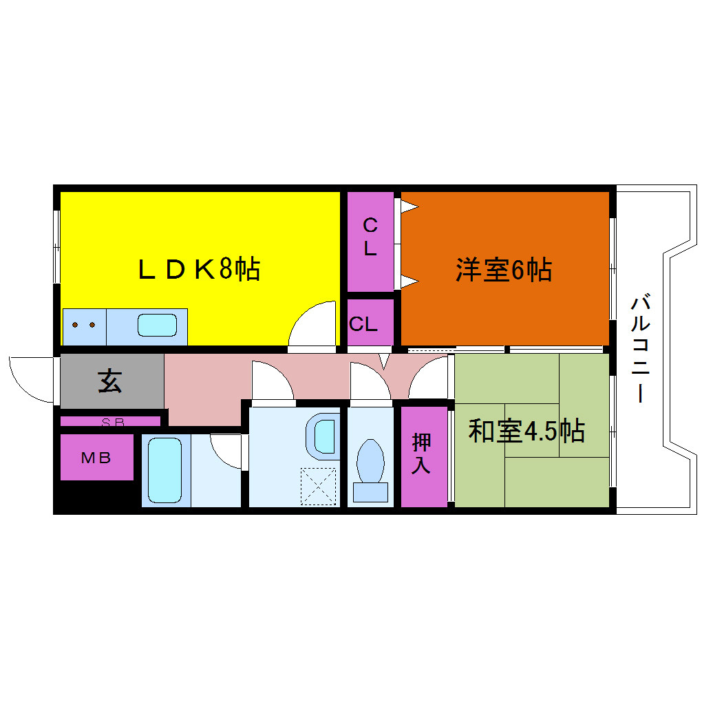 | 間取り詳細 | 洋室 6畳 、和室 4.5畳 、LDK 8畳 |