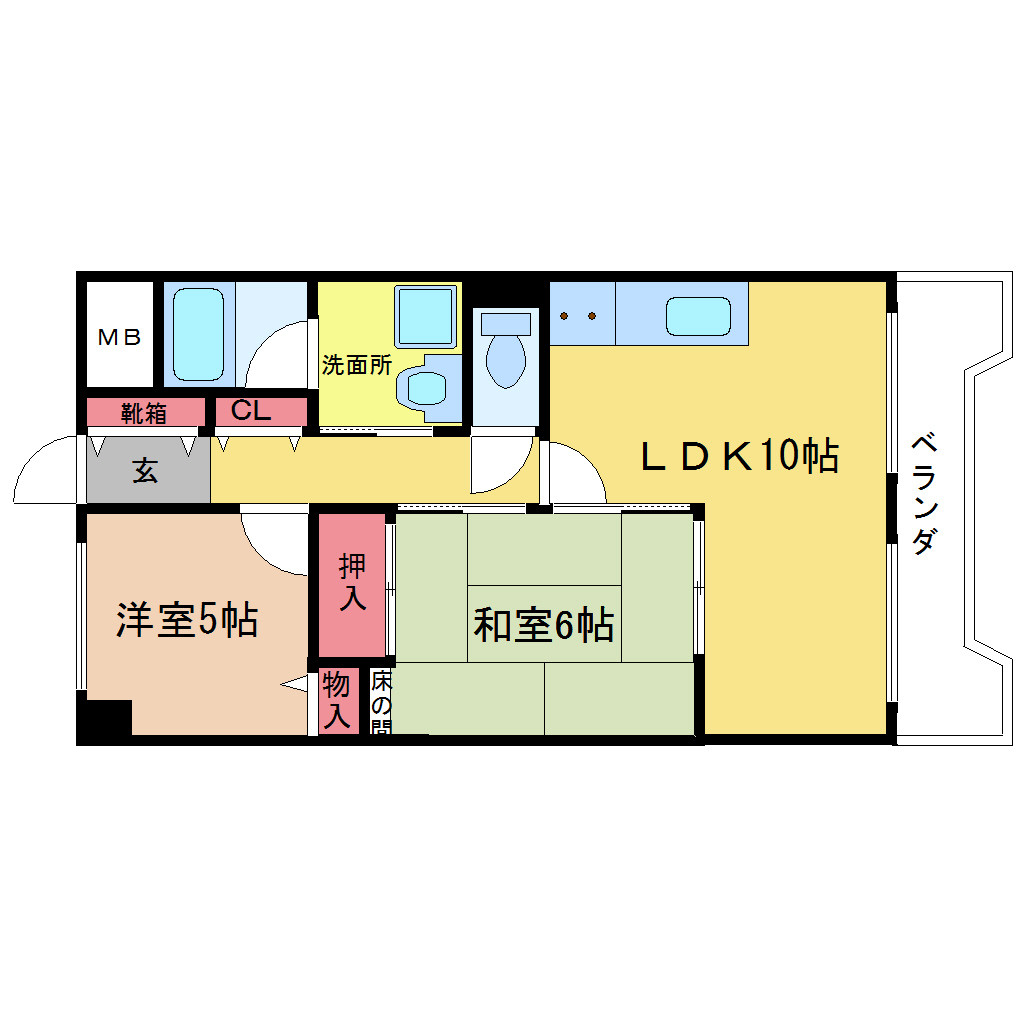 | 間取り詳細 | LDK 10畳 、洋室 5畳 、和室 6畳 |