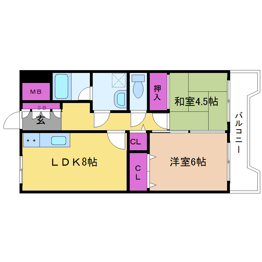 | 間取り詳細 | 洋室 6畳 、和室 4.5畳 、LDK 8畳 |