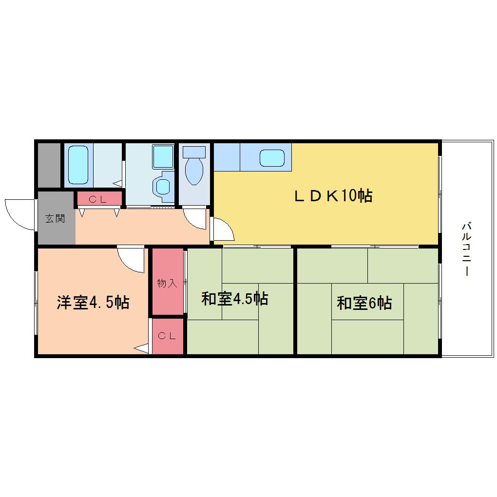 | 間取り詳細 | LDK 10畳 、和室 6畳 、和室 4.5畳 、洋室 4.5畳 |