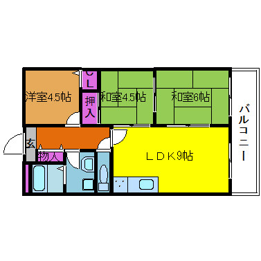 | 間取り詳細 | LDK 9畳 、和室 6畳 、和室 4.5畳 、洋室 4.5畳 |