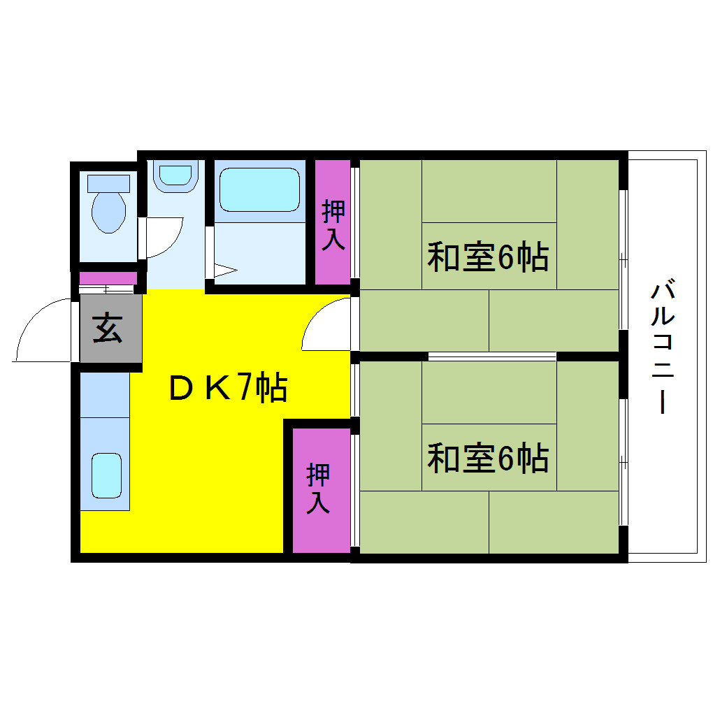 | 間取り詳細 | 和室 6畳 、和室 6畳 、DK 7畳 |