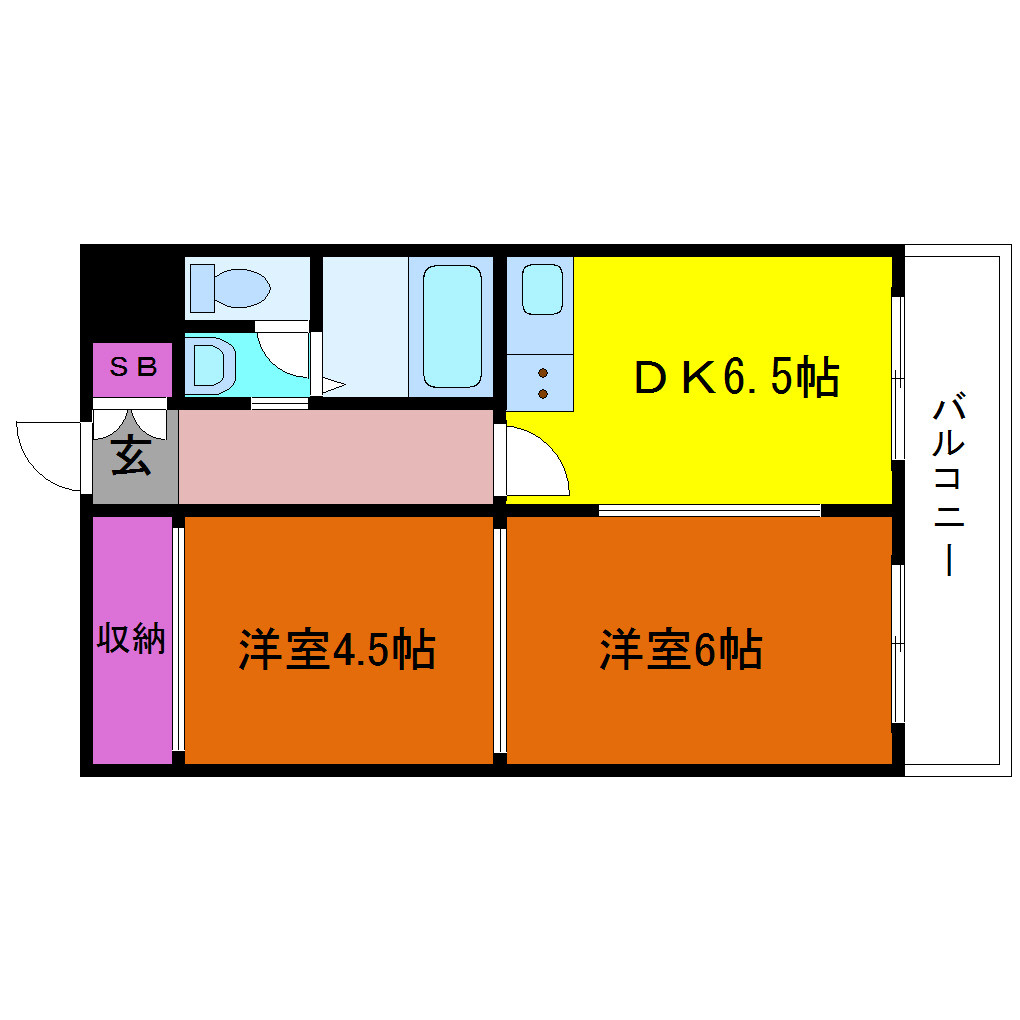 | 間取り詳細 | 洋室 4.5畳 、DK 6.5畳 、洋室 6畳 |
