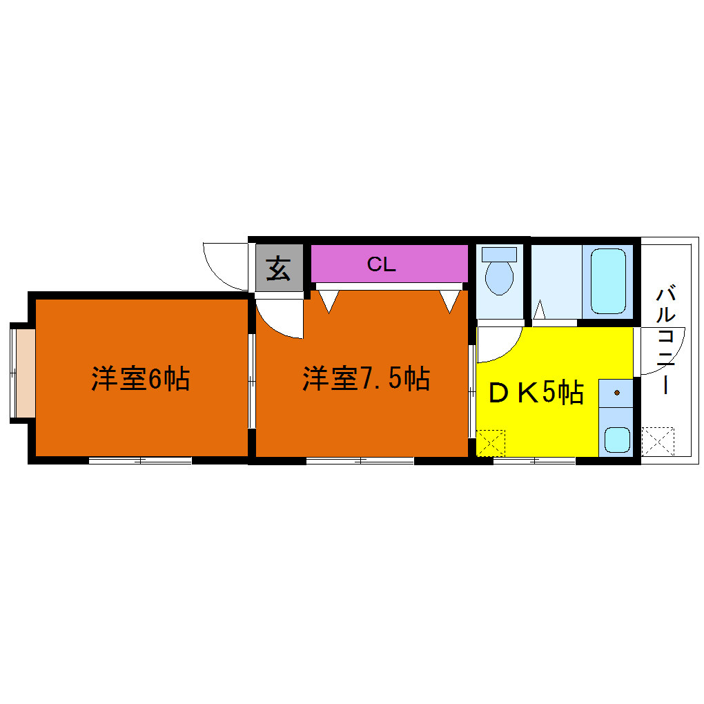 | 間取り詳細 | 洋室 6畳 、洋室 7.5畳 、DK 5畳 |