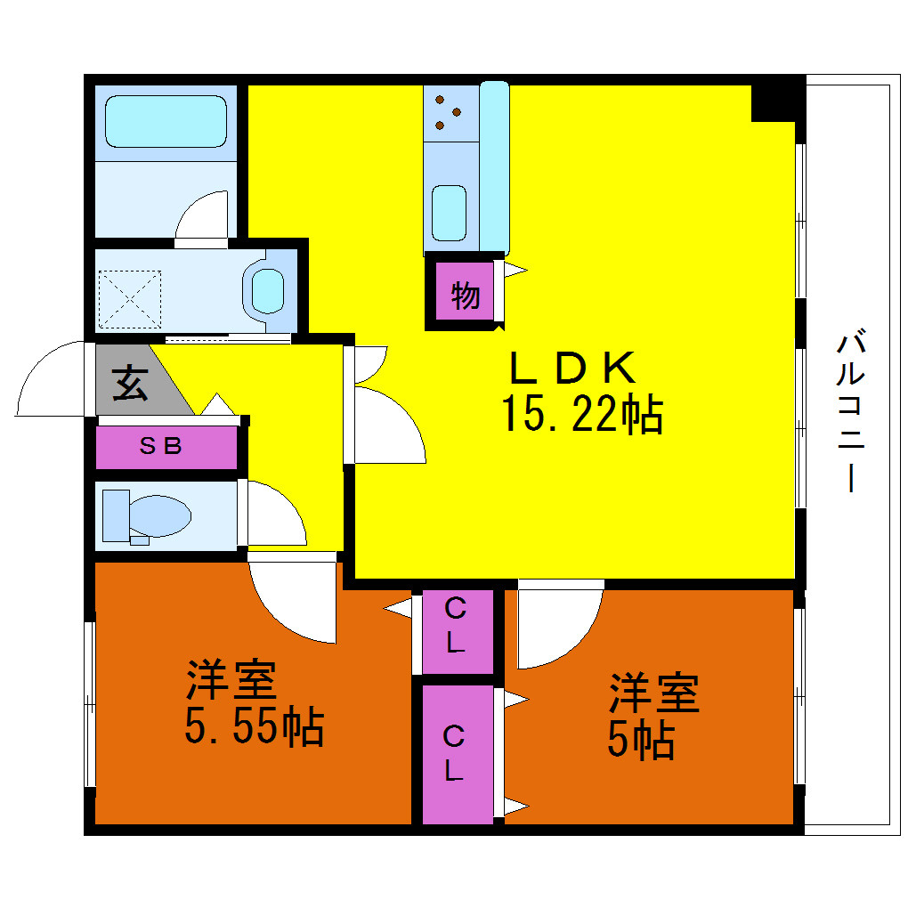| 間取り詳細 | LDK 15.2畳 、洋室 5.5畳 、洋室 5畳 |