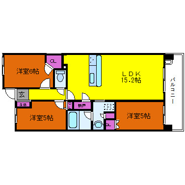 | 間取り詳細 | LDK 15.2畳 、洋室 6畳 、洋室 5畳 、洋室 5畳 |