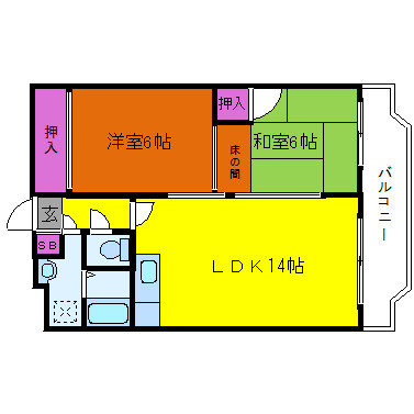 | 間取り詳細 | LDK 14畳 、洋室 6畳 、和室 6畳 |