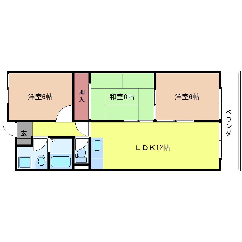 | 間取り詳細 | LDK 12畳 、和室 6畳 、和室 6畳 、洋室 6畳 |