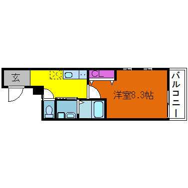 | 間取り詳細 | 洋室 8.3畳 、K 2畳 |