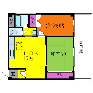 | 間取り詳細 | LDK 10畳 、洋室 6畳 、和室 6畳 |