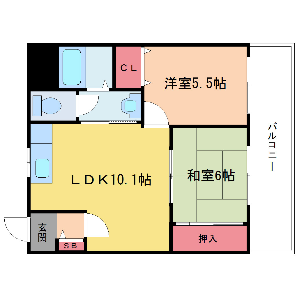 | 間取り詳細 | LDK 10.1畳 、洋室 5.5畳 、和室 6畳 |