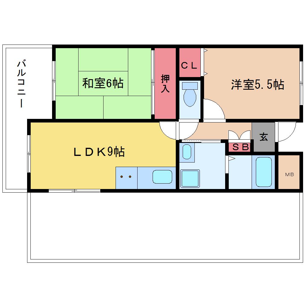 | 間取り詳細 | LDK 9畳 、洋室 5.5畳 、和室 6畳 |