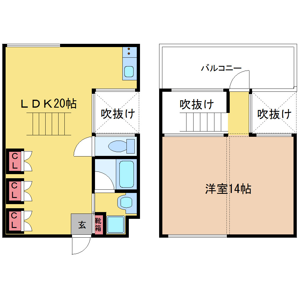 LDK 20畳 、洋室 14畳