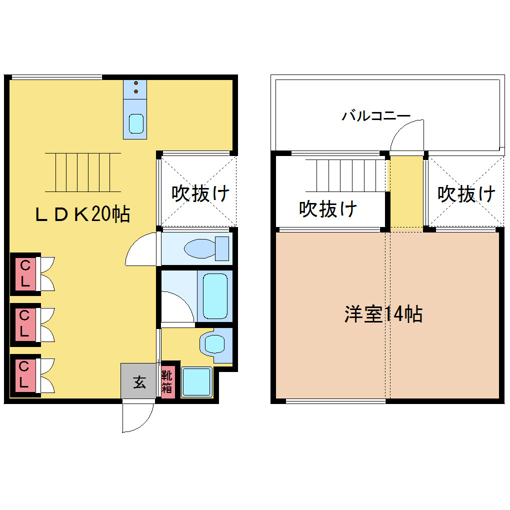 | 間取り詳細 | LDK 20畳 、洋室 14畳 |