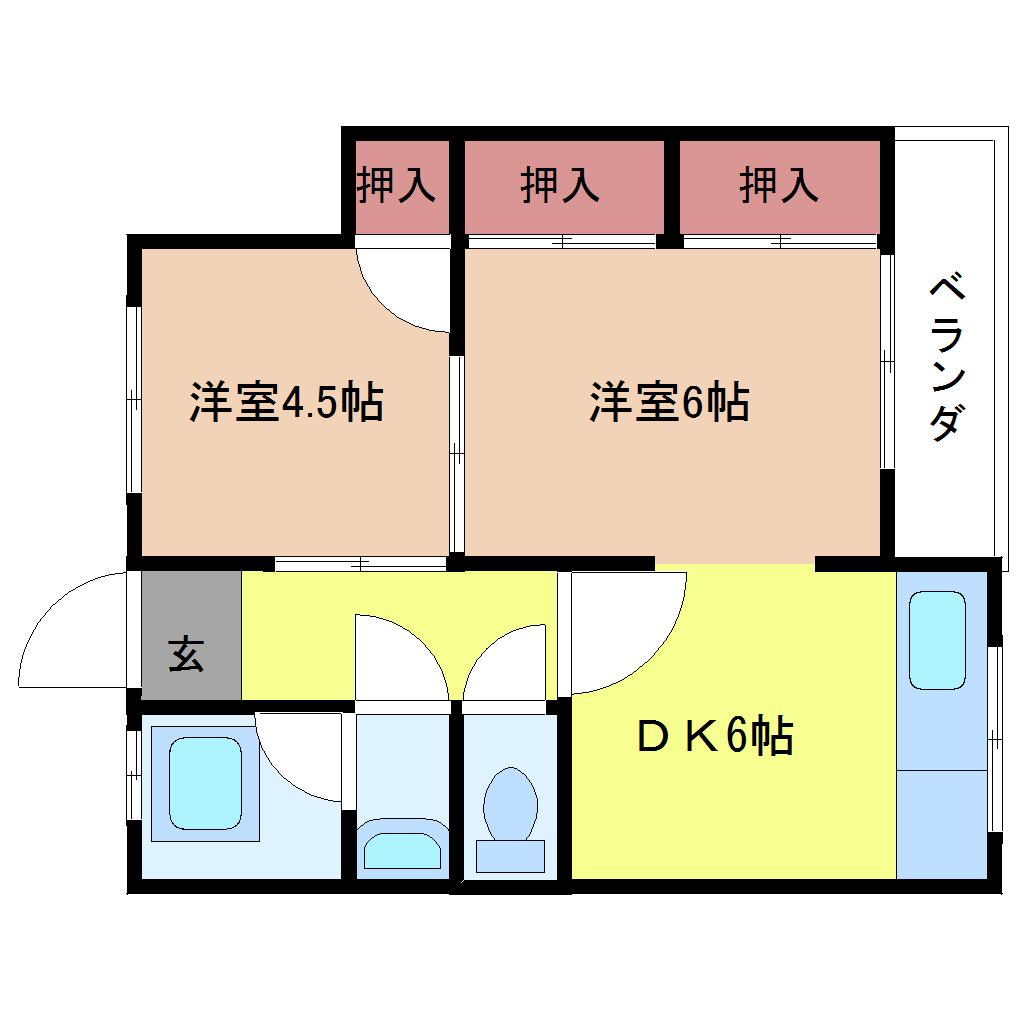 | 間取り詳細 | 洋室 6畳 、洋室 4.5畳 、DK 6畳 |