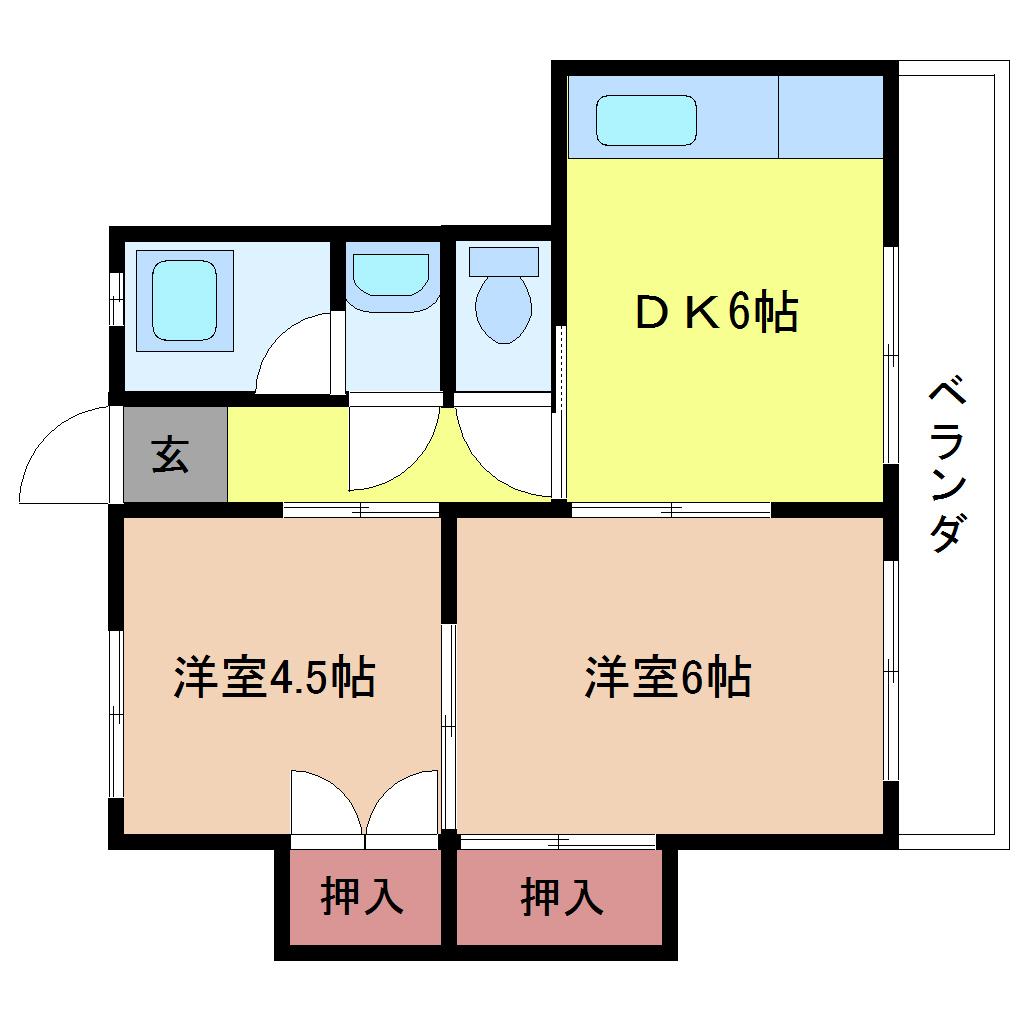 | 間取り詳細 | 洋室 6畳 、洋室 4.5畳 、DK 6畳 |