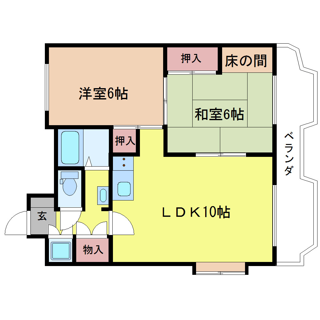 | 間取り詳細 | LDK 10畳 、和室 6畳 、洋室 6畳 |