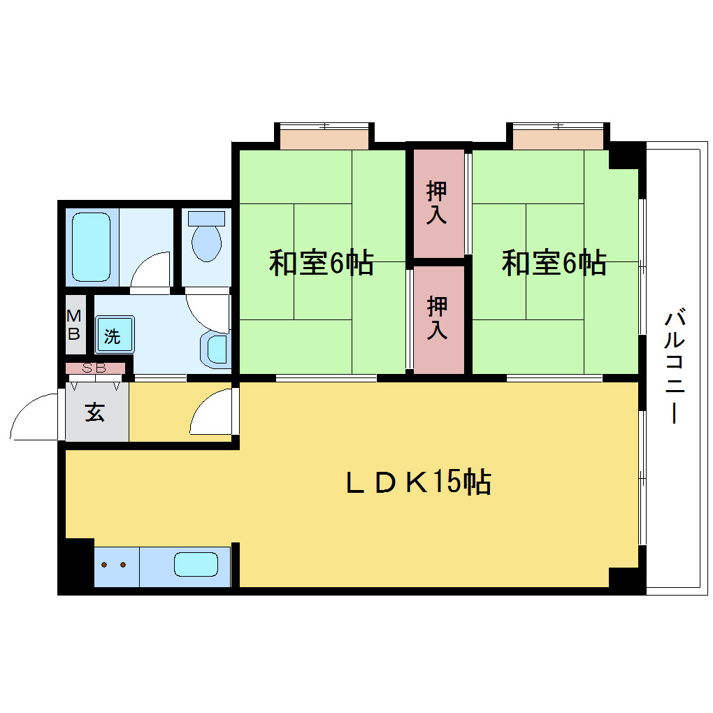 | 間取り詳細 | 和室 6畳 、和室 6畳 、LDK 15畳 |