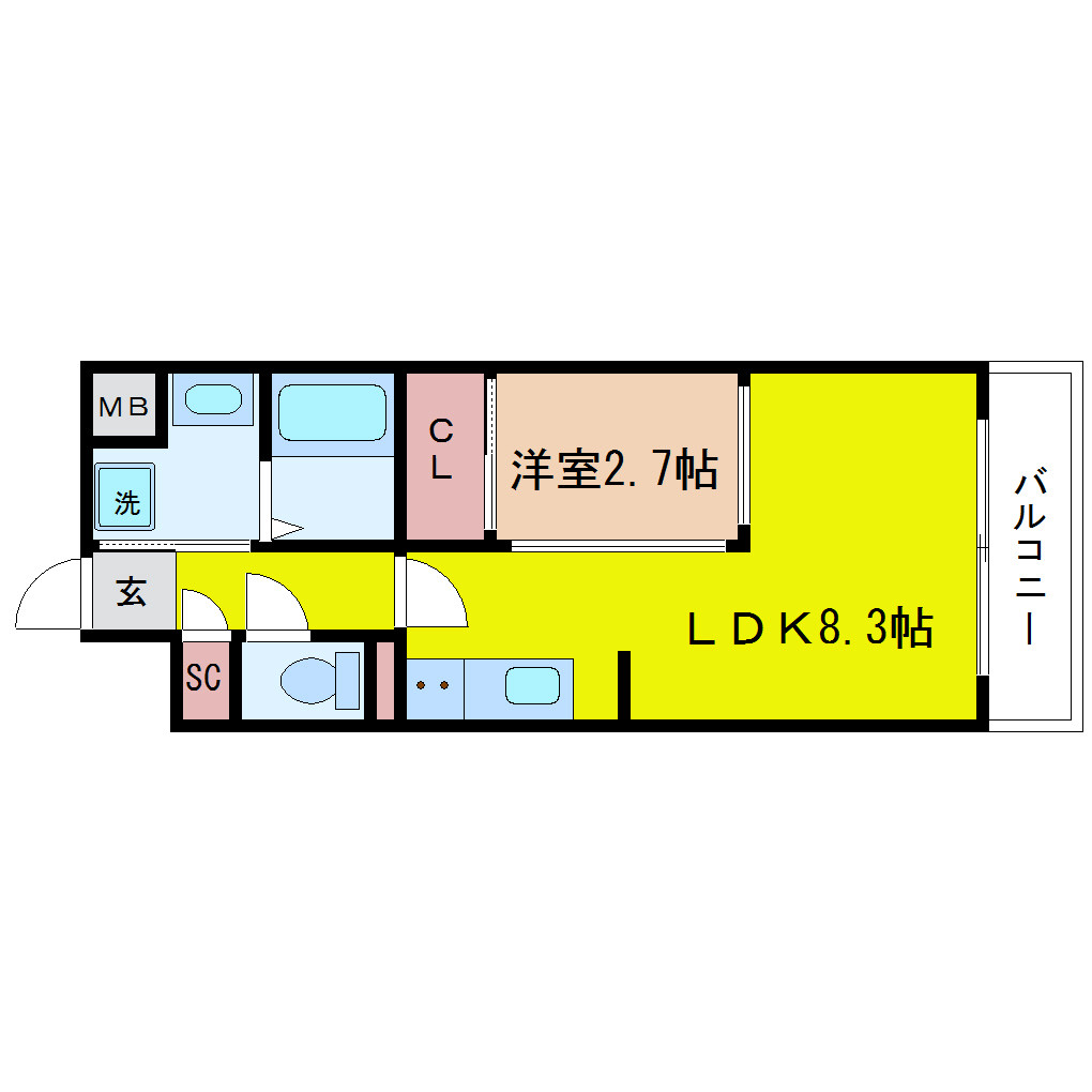 | 間取り詳細 | LDK 8.3畳 、洋室 2.7畳 |