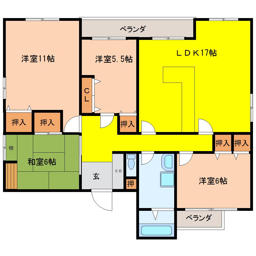 | 間取り詳細 | LDK 17畳 、洋室 11畳 、洋室 6畳 、洋室 5.5畳 、和室 6畳 |