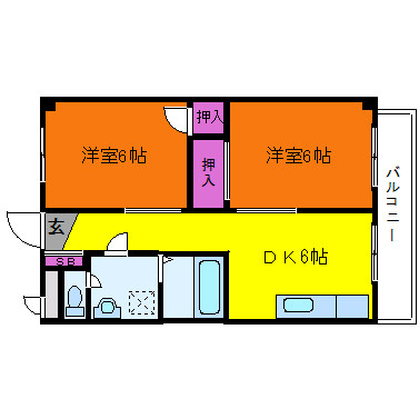 | 間取り詳細 | DK 6畳 、洋室 6畳 、洋室 6畳 |