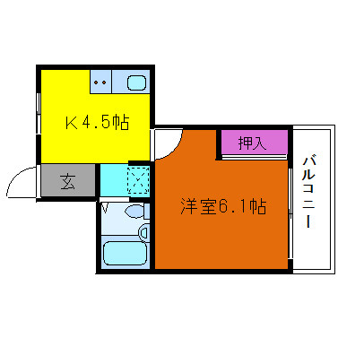 DK 4.5畳 、洋室 6.1畳