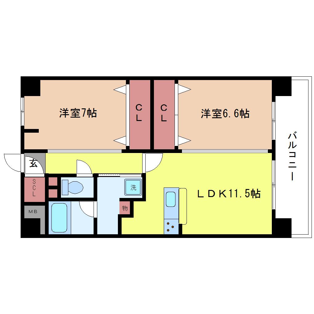 | 間取り詳細 | 洋室 6.6畳 、洋室 7畳 、LDK 11.5畳 |