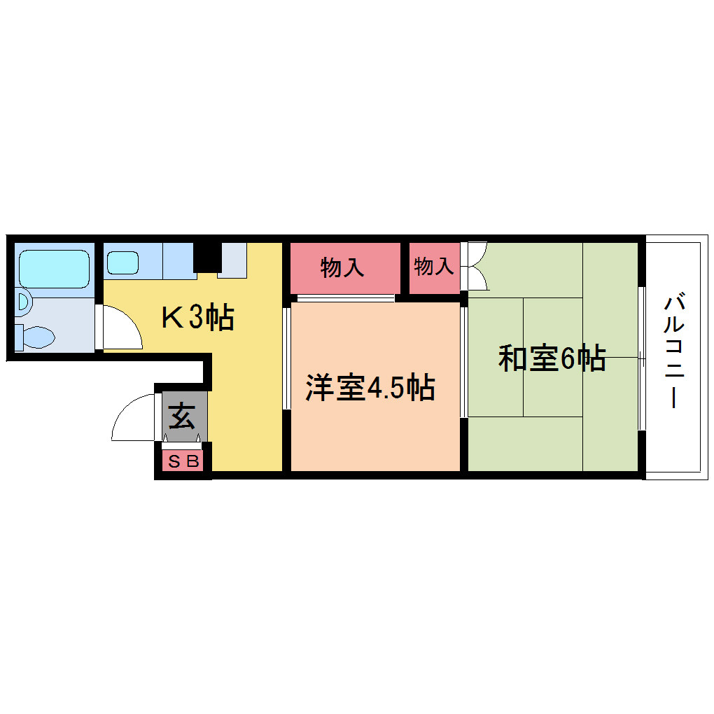 | 間取り詳細 | 和室 6畳 、洋室 4.5畳 、K 3畳 |