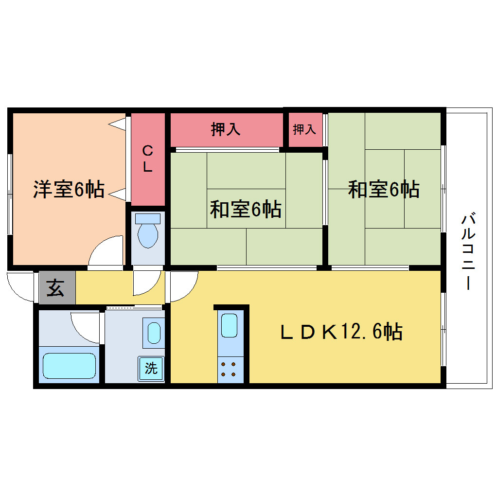 | 間取り詳細 | 洋室 6畳 、和室 6畳 、和室 6畳 、LDK 12.3畳 |