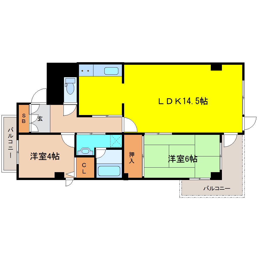 | 間取り詳細 | LDK 14.5畳 、洋室 6畳 、洋室 4畳 |