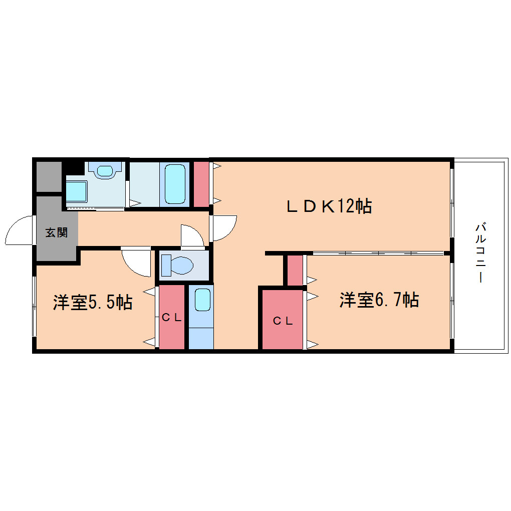| 間取り詳細 | 洋室 5.5畳 、洋室 6.7畳 、LDK 12畳 |