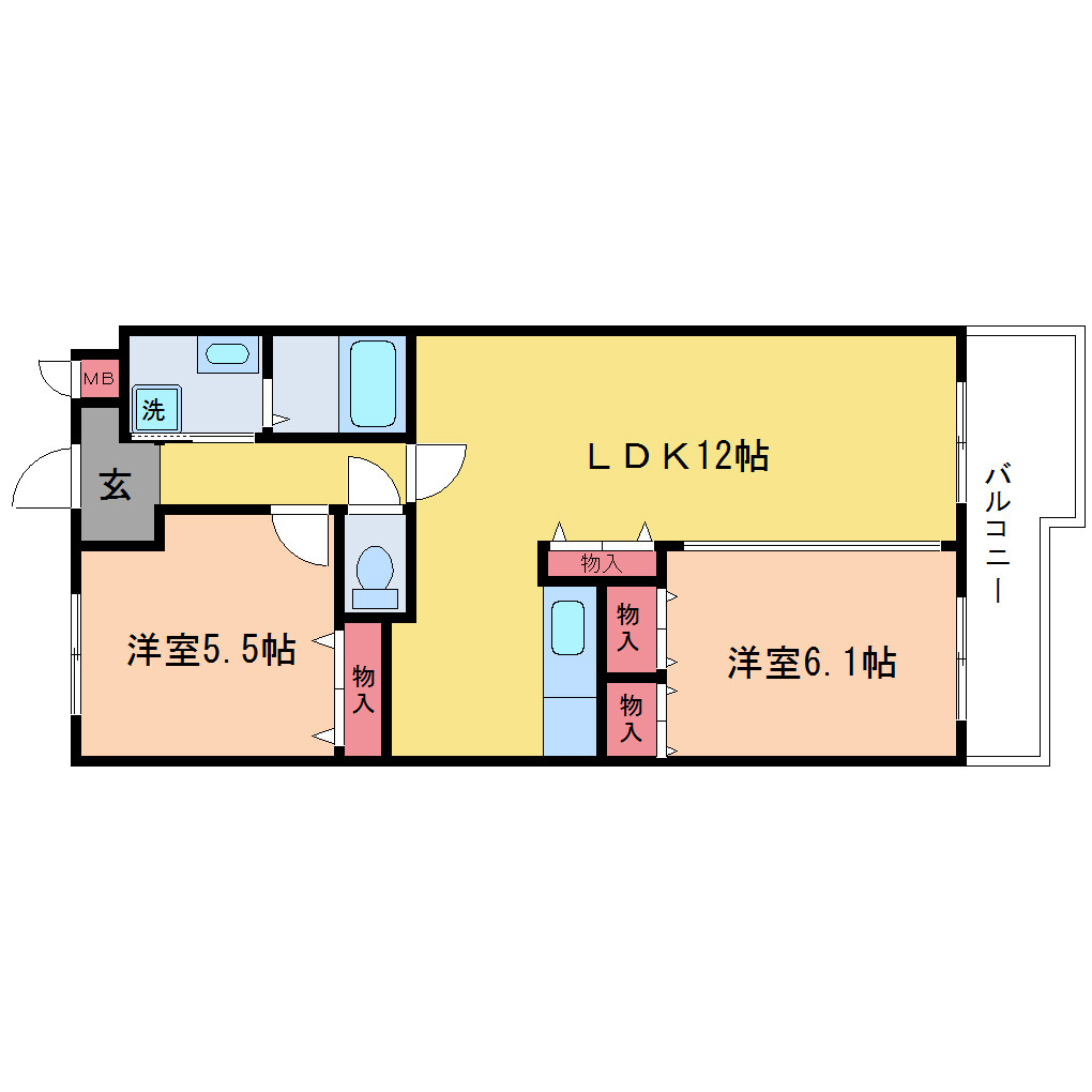 | 間取り詳細 | 洋室 5.5畳 、洋室 6.1畳 、LDK 12畳 |