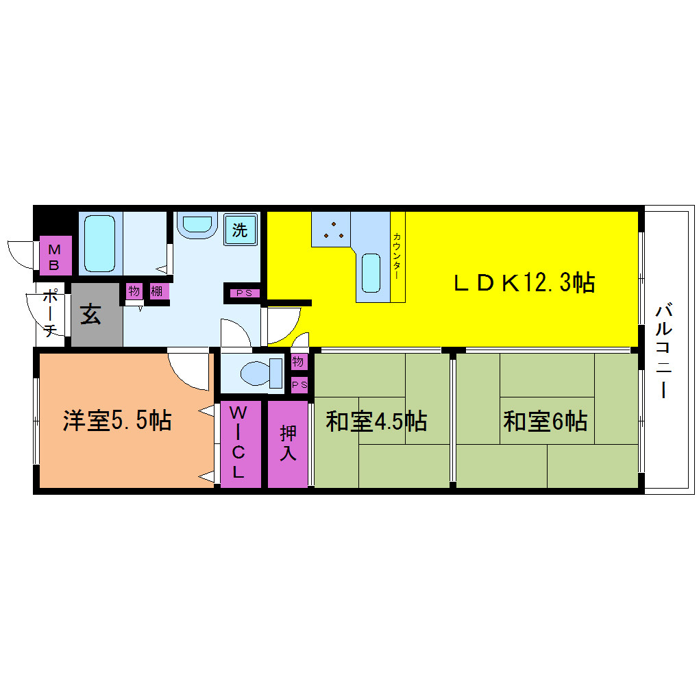 | 間取り詳細 | 洋室 5.5畳 、和室 4.5畳 、和室 6畳 、LDK 12.3畳 |