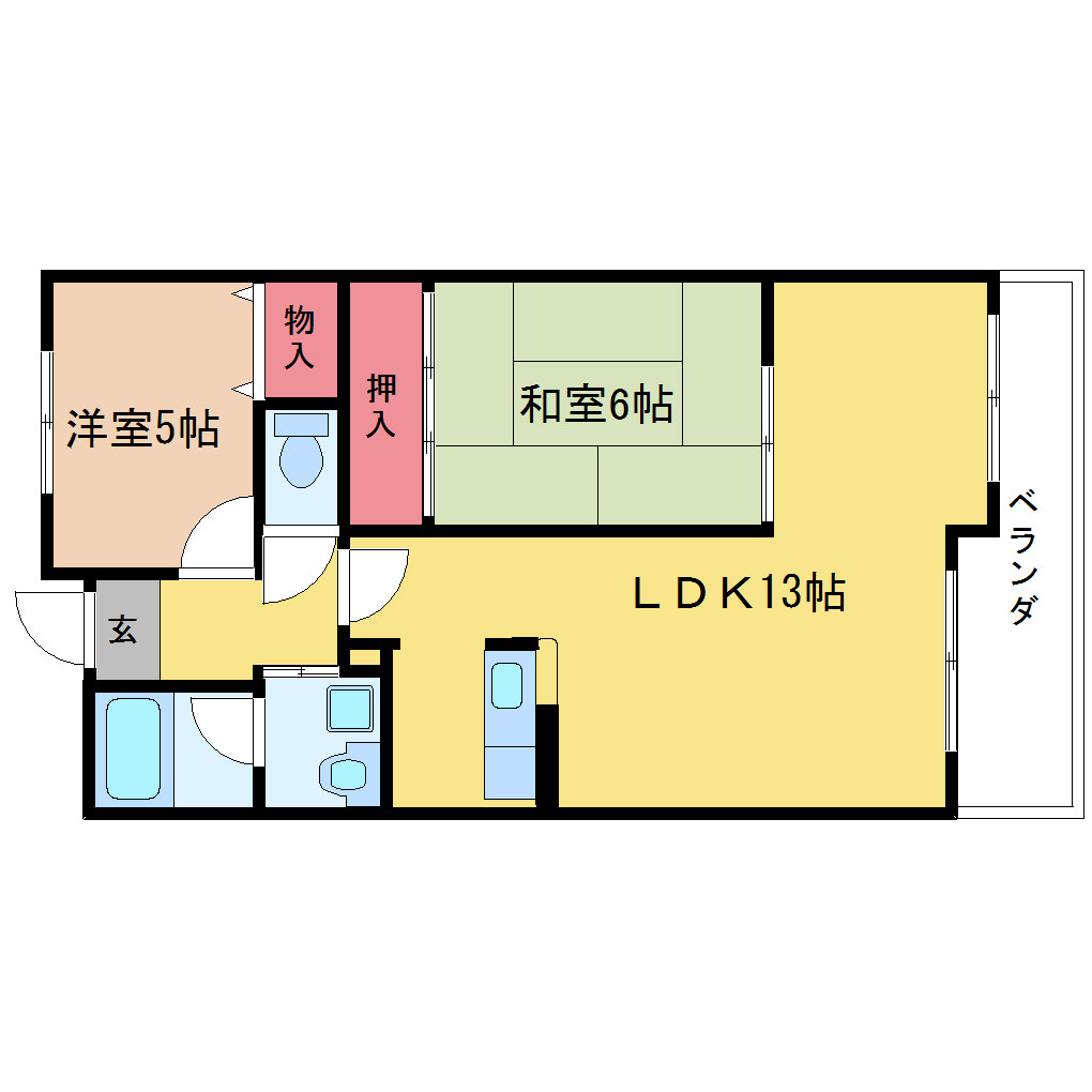 | 間取り詳細 | LDK 13畳 、洋室 5畳 、和室 6畳 |