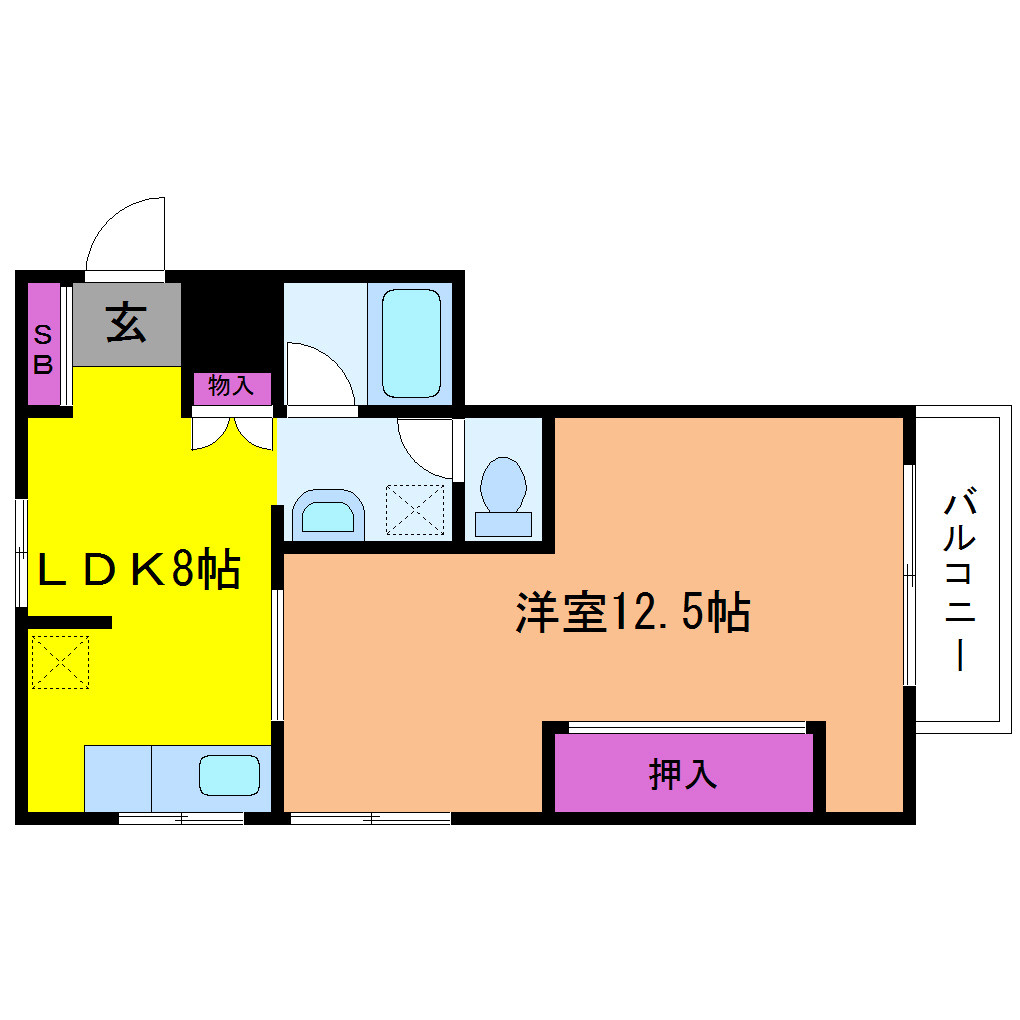 洋室 12.5畳 、LDK 8畳