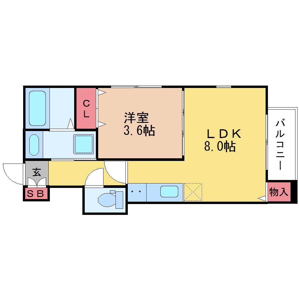 | 間取り詳細 | LDK 8畳 、洋室 3.6畳 |