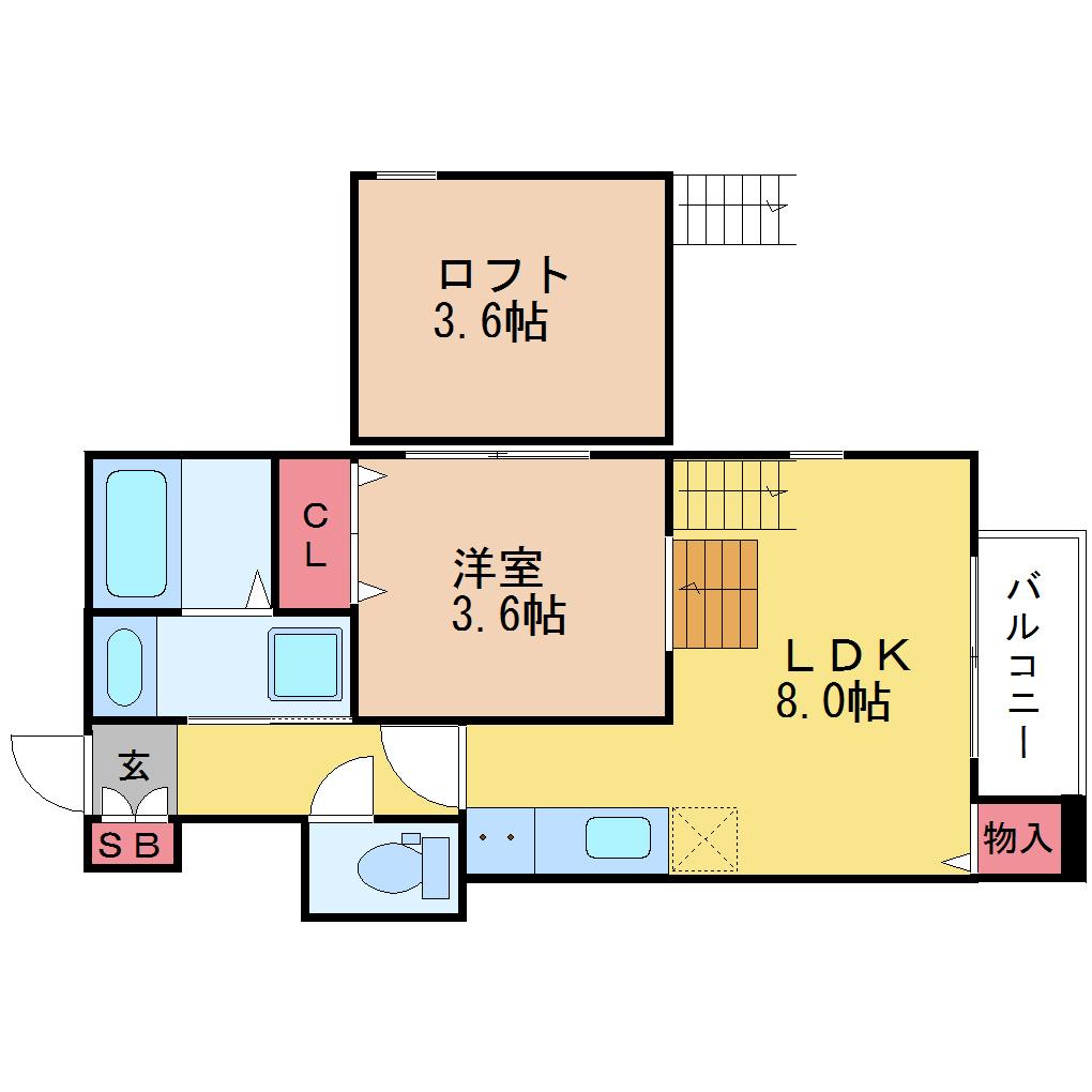 間取り詳細 LDK 8畳 、洋室 3.6畳