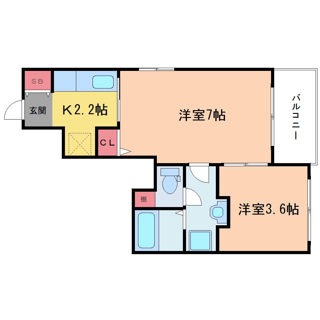 | 間取り詳細 | K 2.2畳 、洋室 7畳 、洋室 3.6畳 |