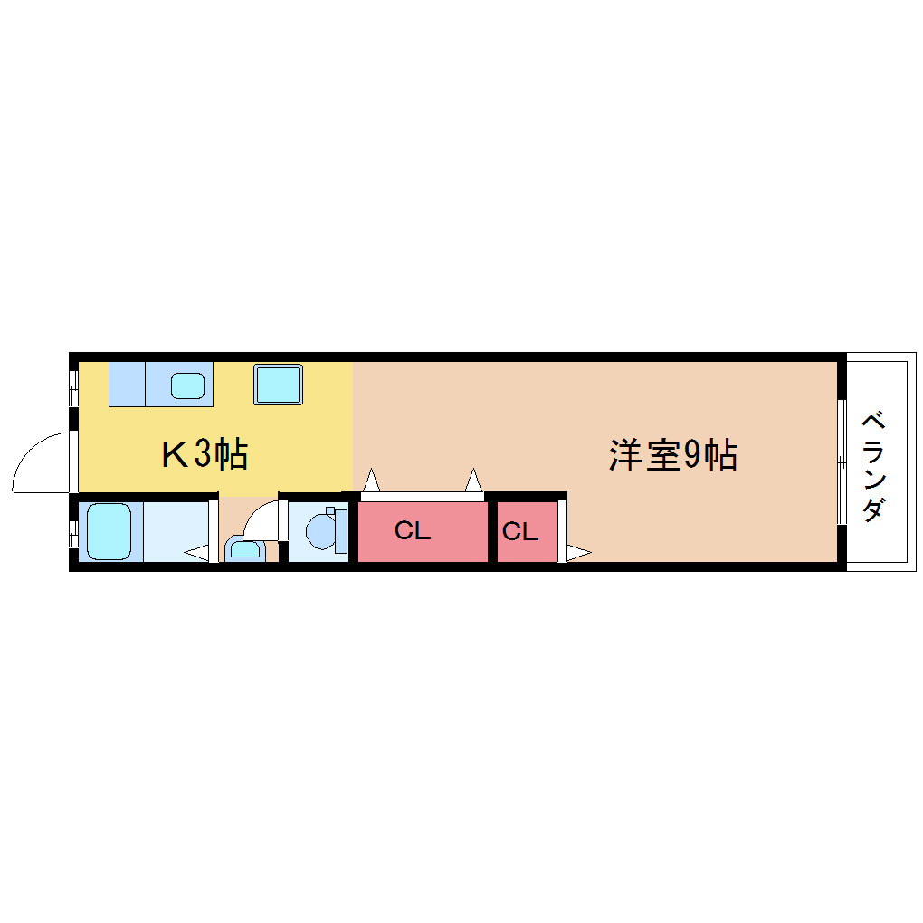 | 間取り詳細 | K 3畳 、洋室 9畳 |