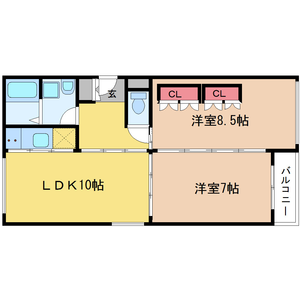 | 間取り詳細 | LDK 10畳 、洋室 8.5畳 、洋室 7畳 |