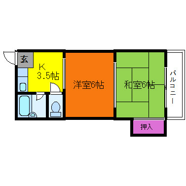 | 間取り詳細 | K 3.5畳 、洋室 6畳 、和室 6畳 |