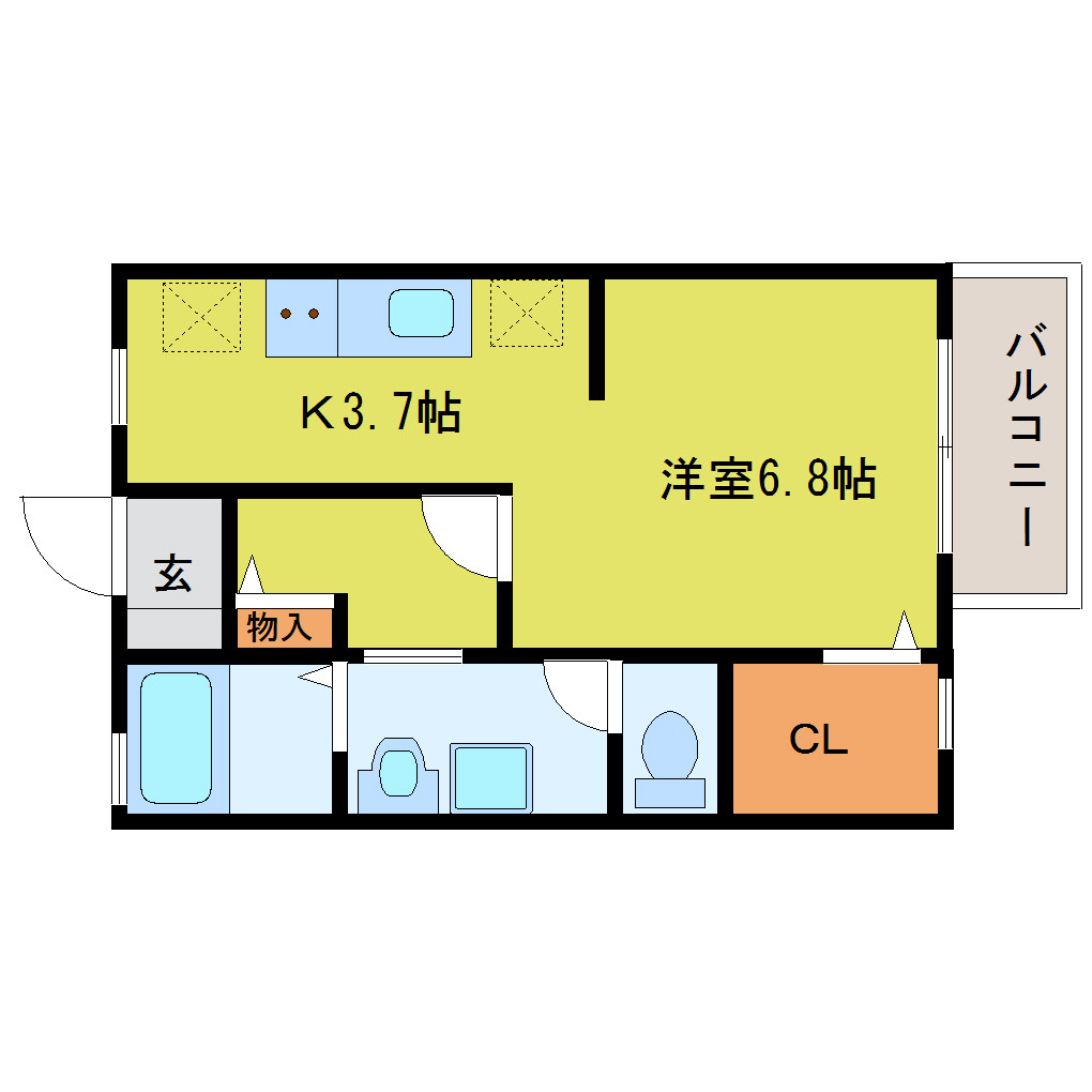 洋室 6.8畳 、K 3.7畳